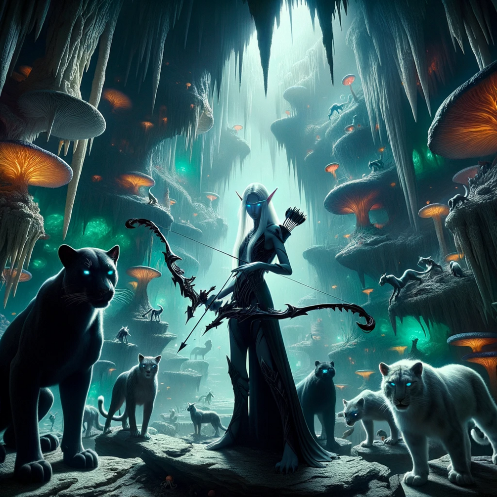 In the heart of the Underdark, where shadows cling to every crevice and the only light comes from the luminescent fungi, a hushed tale is whispered among the Drow. A tale not of treachery or power, but of a lone Drow named Malice and her shadow-panther, Elaris.