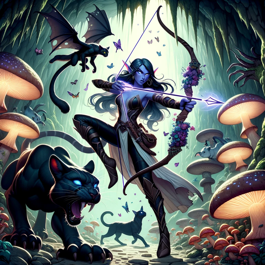 In the heart of the Underdark, where shadows cling to every crevice and the only light comes from the luminescent fungi, a hushed tale is whispered among the Drow. A tale not of treachery or power, but of a lone Drow named Malice and her shadow-panther, Elaris.